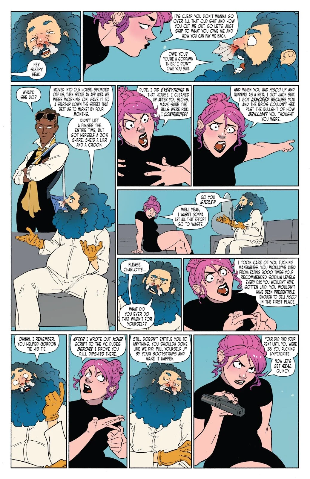 Saga is on the extreme low end when it comes to panel density, which is wild, because it’s one of the best paced comics I can think of. Crowded has a similar number of pages and has a whole panel over it, which to me, speaks to intent more than anything else. To me, Saga is built to work better as a whole than it does in parts, with the individual issues working harder to keep readers coming back than they do to deliver a complete experience. Crowded, especially this volume, takes a different approach.