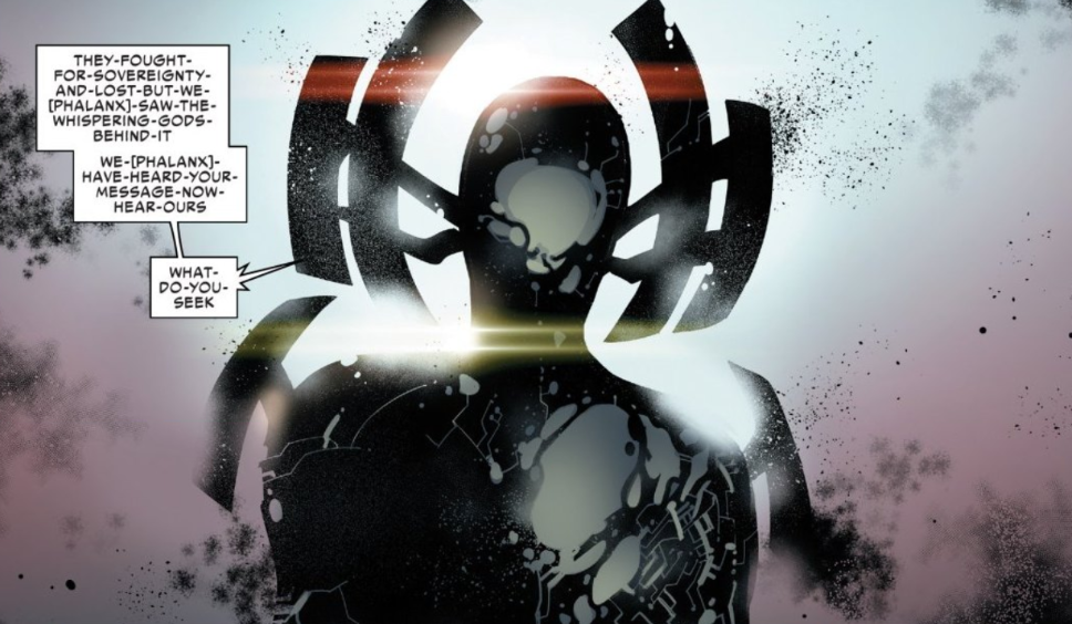 Powers of X #2 - Daddy. Magneto. Oh ho and more Cyclops-masquerading-as-a-top. It absolutely will be done, you’re right. Is the Phalanx hot? With that almost-Proxima-Midnight-looking headpiece, I might be willing to assimilate.