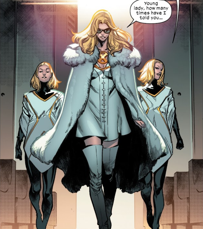 HIS NAME IS NORTH AND HIS MOMMAS ARE POLARIS AND EMMA FROST. Does he have any lines? Who cares. I even had to snag a better panel from a previous issue. He doesn’t do anything, but he doesn’t have to.